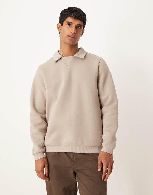 ASOS DESIGN – Locker geschnittenes Polo-Sweatshirt in Grau mit geripptem Kragen