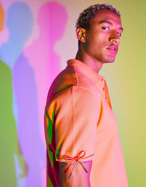ASOS DESIGN – Locker geschnittenes Polohemd in Orange mit Waffelstruktur und Kordelzug-Details