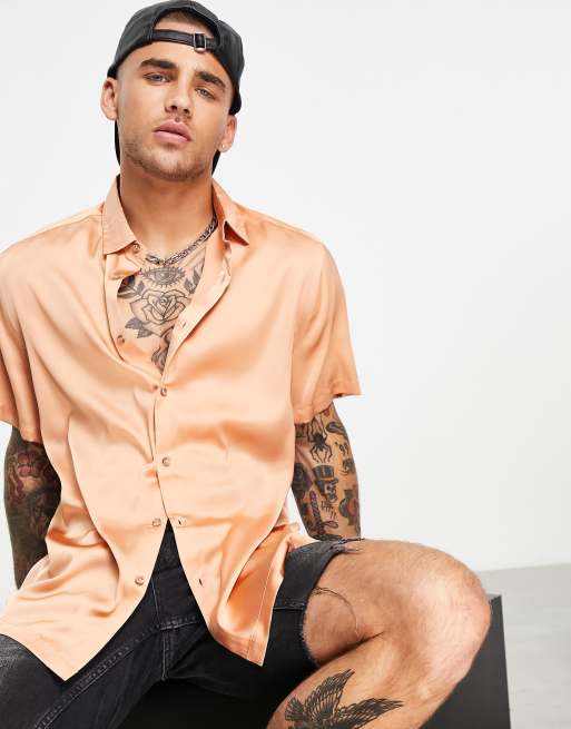 ASOS DESIGN – Locker geschnittenes Satin-Hemd in Apricot - BPINK