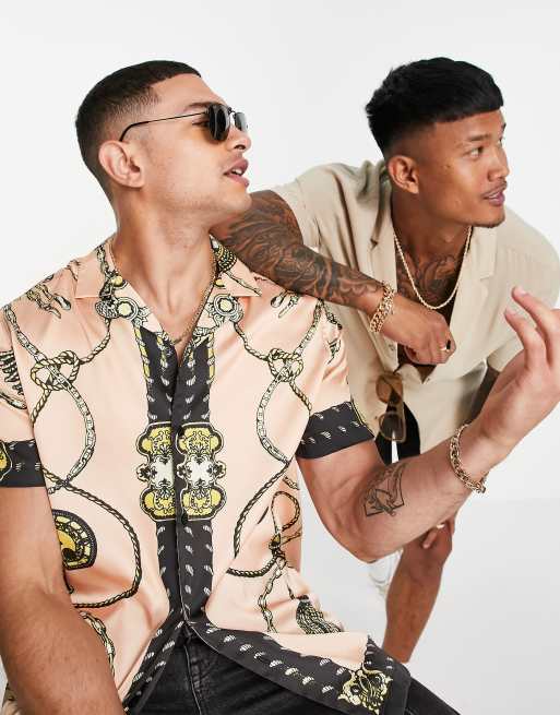 ASOS DESIGN – Locker geschnittenes Satin-Hemd mit Reverskragen und Schmucksteinprint