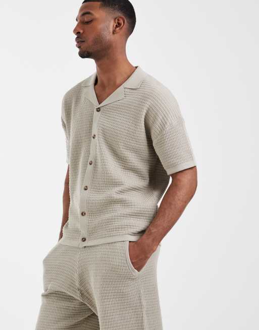 ASOS DESIGN – Locker geschnittenes Strick-Polohemd in Salbeigrün mit Reverskragen, Kombiteil