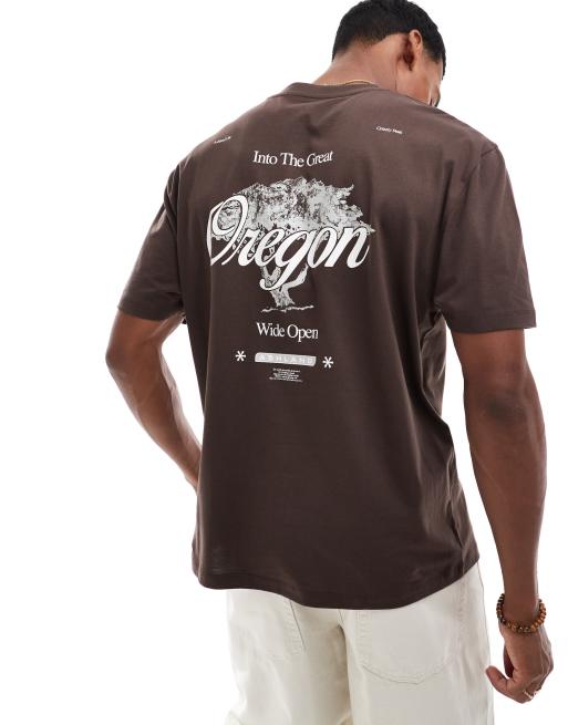 ASOS DESIGN – Locker geschnittenes T-Shirt in Braun mit City-Rückenprint