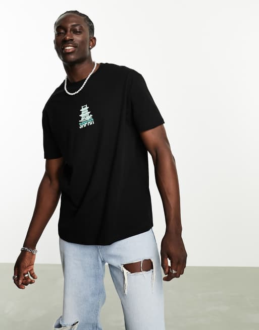 ASOS DESIGN – Locker geschnittenes T-Shirt in Schwarz mit „Japan“-Print auf der Brust