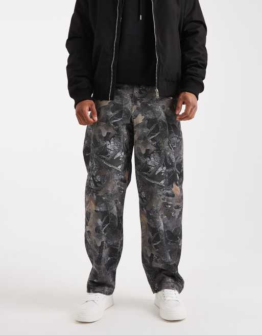 ASOS DESIGN – Locker sitzende Hose mit geradem Schnitt und Military-Muster