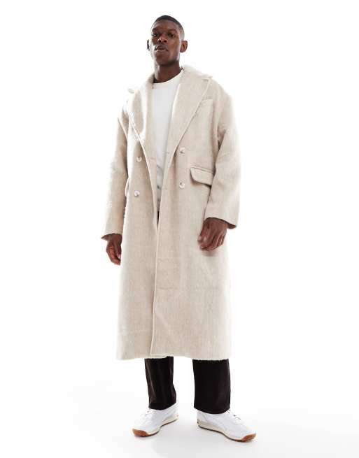 ASOS DESIGN – Longline-Mantel in beigefarbener, angerauter Wolloptik mit Oversize-Passform