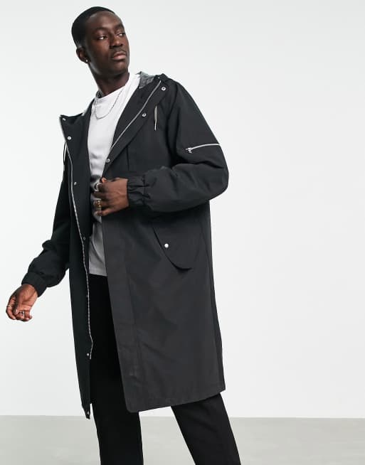 ASOS DESIGN – Longline-Parkamantel in Schwarz