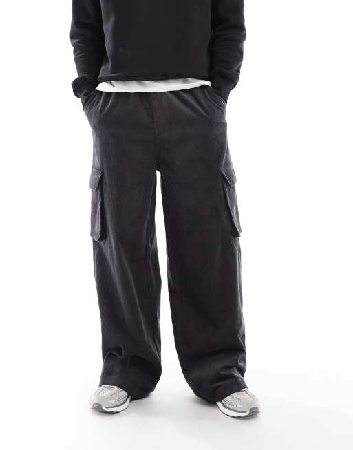ASOS DESIGN – Loose-Fit-Cargohose aus Cord in Anthrazit