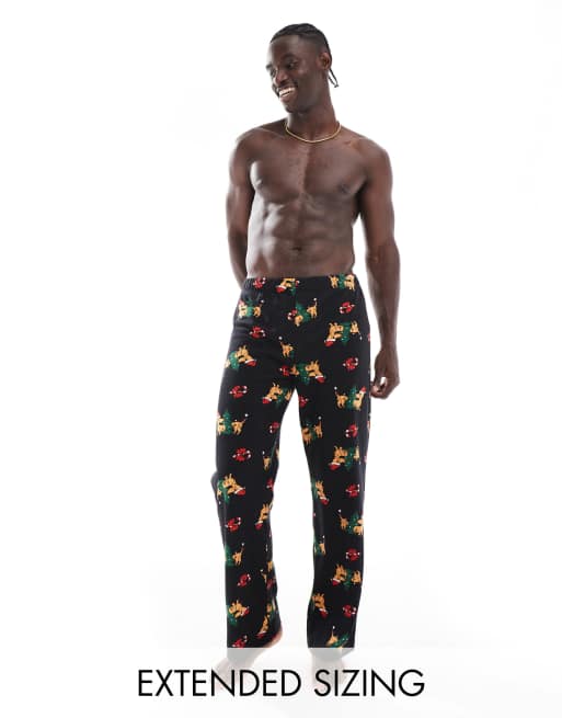 ASOS DESIGN – Lounge-Hose in Schwarz mit weihnachtlichem Dackelmuster