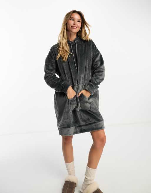 ASOS DESIGN – Lounge-Kleid aus superweichem Fleece in Dunkelgrau