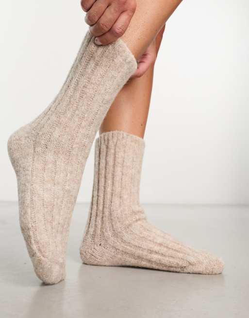 ASOS DESIGN – Lounge-Socken aus Grobstrick in Hellbeige