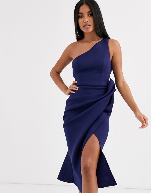 ASOS DESIGN – Marineblaues One-Shoulder-Midikleid mit Raffdetail