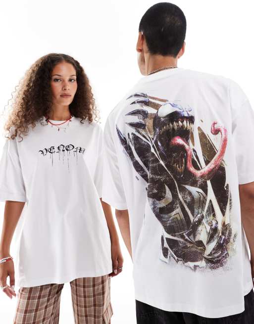 ASOS DESIGN – Marvel – Unisex-T-Shirt in Weiß mit Oversize-Schnitt und „Venom“-Grafikprints