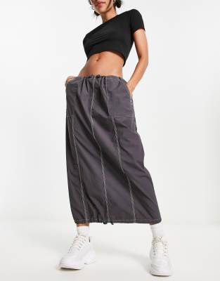 ASOS DESIGN – Maxi-Fallschirmrock in Anthrazit mit Kontrastnaht