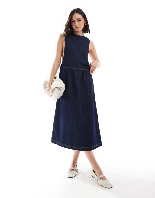 ASOS DESIGN – Maxi-Jeanskleid in Indigoblau mit tief sitzender Taille