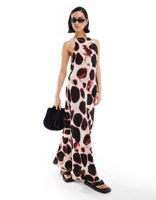 ASOS DESIGN – Maxi-Sommerkleid aus Leinen mit Ringerrücken und verschwommenem Animalprint