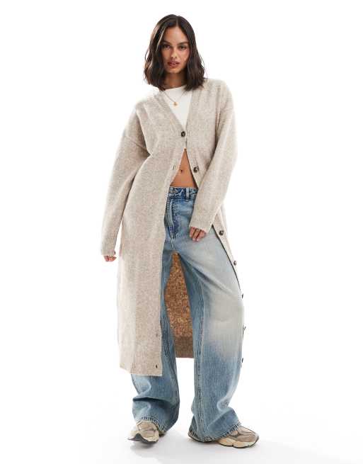 ASOS DESIGN – Maxi-Strickjacke in Stein