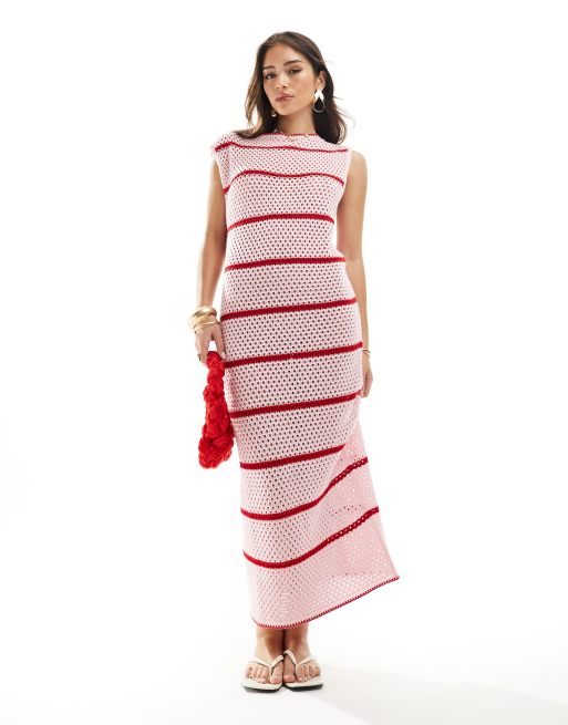 ASOS DESIGN – Maxi-Strickkleid in Rosa mit kontrastierendem Design