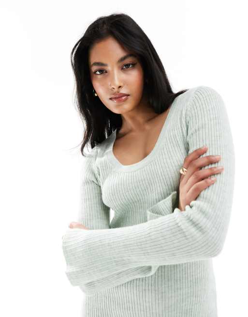 ASOS DESIGN – Maxi-Strickkleid in Salbeigrün mit U-Ausschnitt