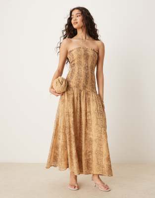 ASOS DESIGN – Maxikleid aus gerafftem Chiffon mit tiefer Taille und Schlangenhautmuster