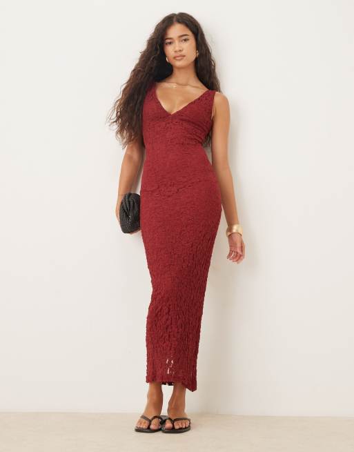 ASOS DESIGN – Maxikleid aus Spitze in Burgunderrot mit V-Ausschnitt