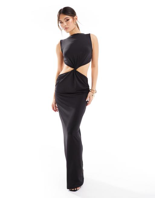 ASOS DESIGN – Maxikleid in Schwarz mit verdrehter Vorderseite