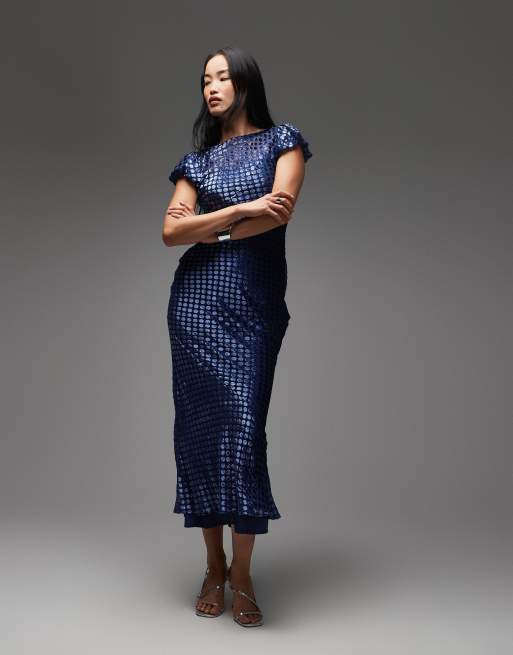 ASOS DESIGN – Maxikleid in Stahlblau aus Ausbrennersamt mit U-Ausschnitt