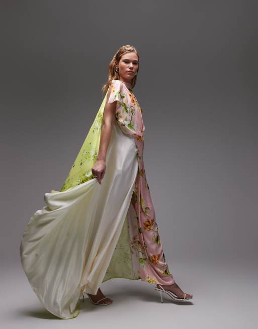 ASOS DESIGN – Maxikleid mit drapierter Wasserfall-Vorderseite und Blumenmuster-Mix