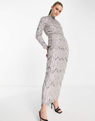 ASOS DESIGN – Maxikleid mit längs verlaufender Verzierung und Edelsteindetail