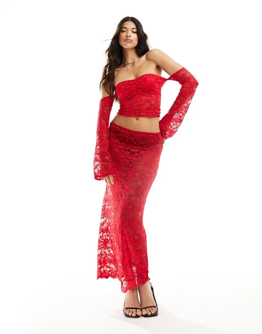 ASOS DESIGN – Maxirock aus Spitze in Rot, Kombiteil