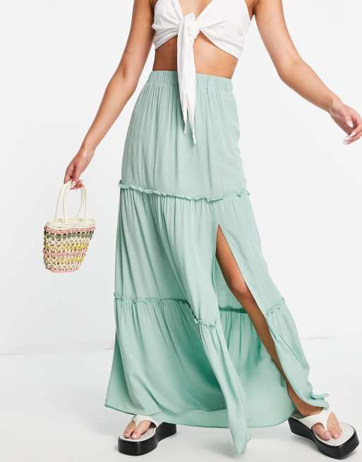 ASOS DESIGN – Maxirock in Knitteroptik mit Seitenschlitz in Salbeigrün