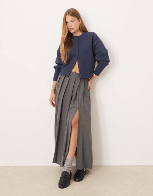 ASOS DESIGN – Maxirock in meliertem Grau mit Falten