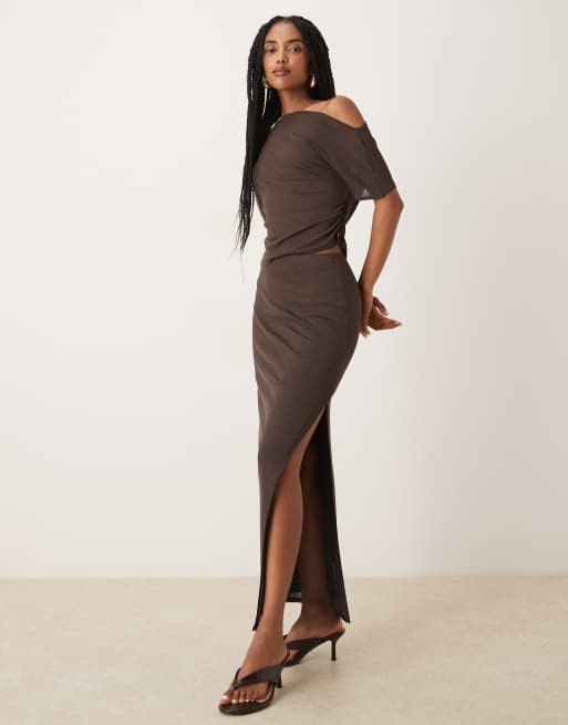 ASOS DESIGN – Maxirock in Schokobraun aus Netzstoff, Kombiteil