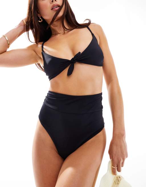 ASOS DESIGN – Maya – Mix and Match – Bikinihose in Schwarz mit hohem Bund und breitem Saum