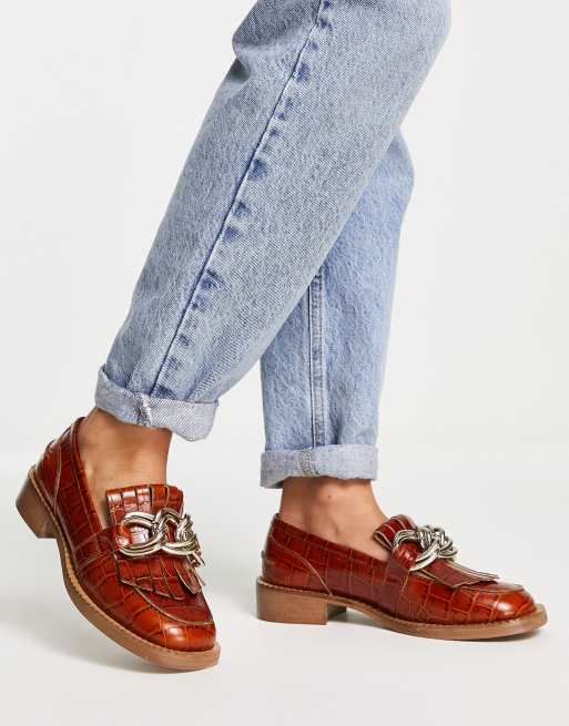 ASOS DESIGN – Medallion – Leder-Loafer in Kroko-Hellbraun mit Fransen