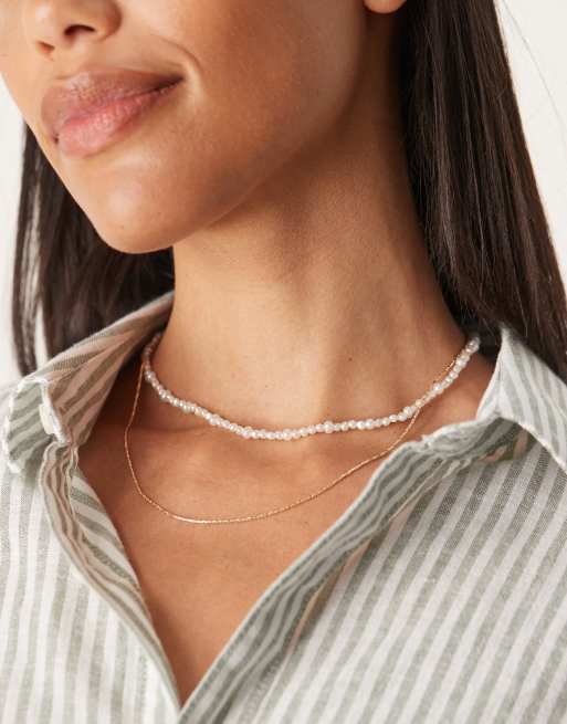 ASOS DESIGN – Mehrreihige Halskette in Gold mit einer Reihe Kunstperlen und einer Kette