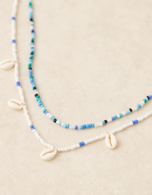 ASOS DESIGN – Mehrreihige Perlen-Bauchkette in Gold-Optik mit künstlichen Muscheln