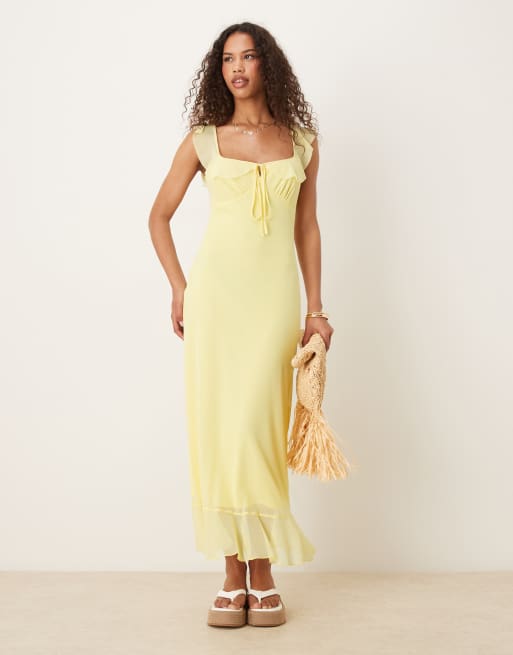 ASOS DESIGN – Midi-Freizeitkleid aus gelbem Netzstoff mit doppelten Rüschen