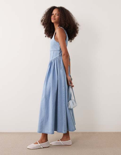 ASOS DESIGN – Midi-Jeanskleid im Ballerina-Design in Hellblau
