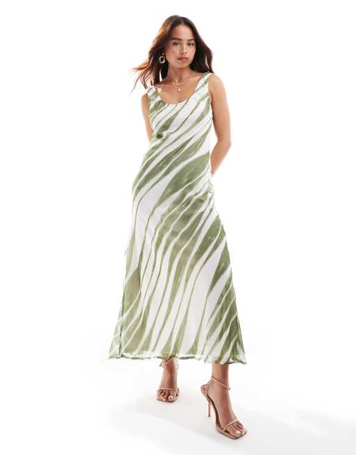 ASOS DESIGN – Midi-Trägerkleid aus Chiffon mit U-Ausschnitt und grünem Streifenmuster