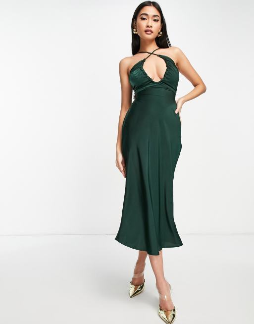 ASOS DESIGN ‑ Midikleid aus Satin mit Neckholder, überkreuzter Vorderseite und Schnürung hinten