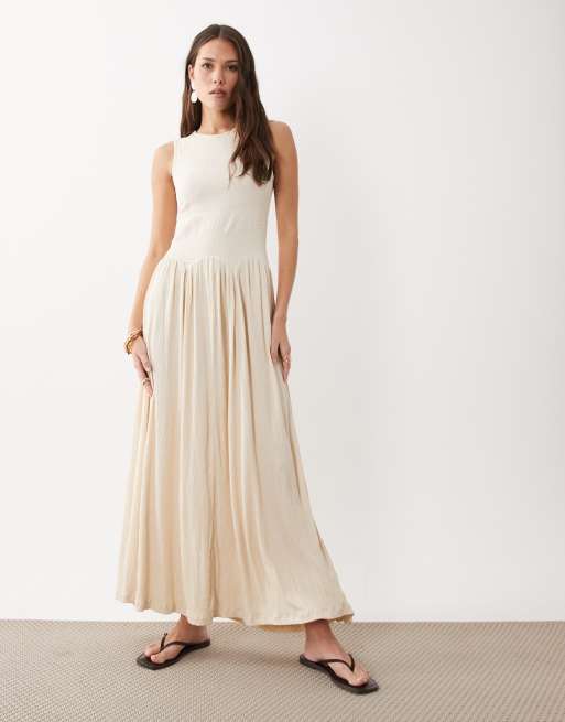 ASOS DESIGN – Midikleid in Cremeweiß mit Farbblockdesign und Knitterstruktur