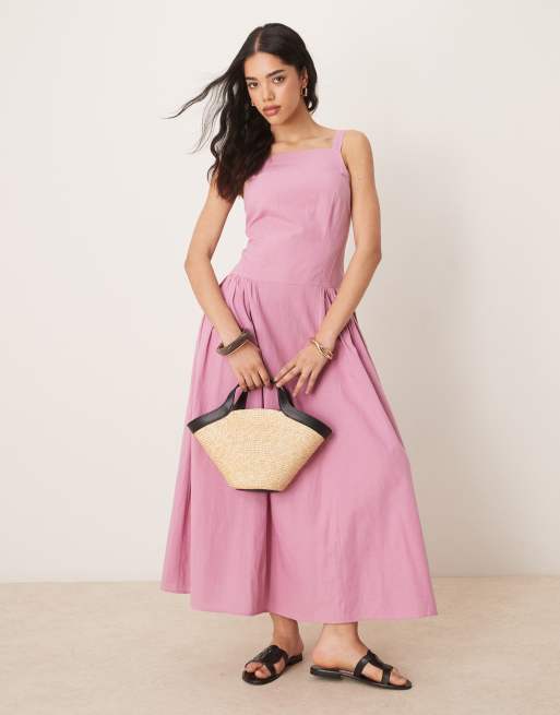 ASOS DESIGN – Midikleid in rauchigem Rosa mit eckigem Ausschnitt und tiefer Taille