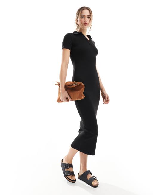 ASOS DESIGN – Midikleid in Schwarz mit Polokragen