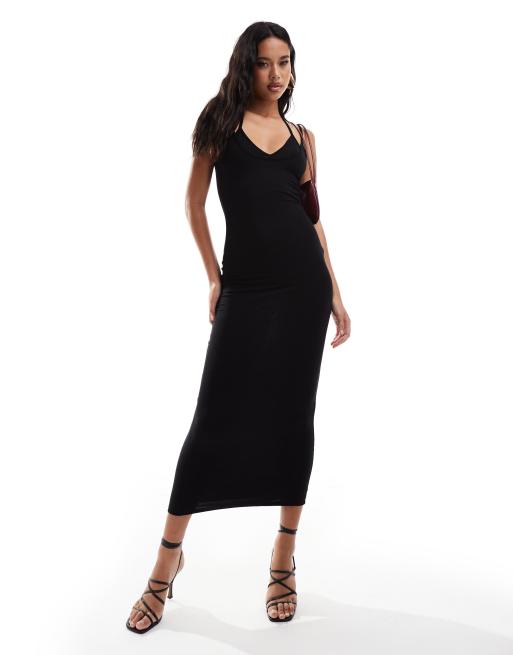 ASOS DESIGN – Midikleid in Schwarz mit U-Ausschnitt und zweifachen Trägern