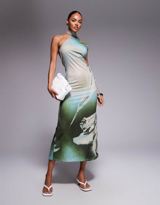 ASOS DESIGN – Midikleid mit blauem Blumenprint und Schaldetail