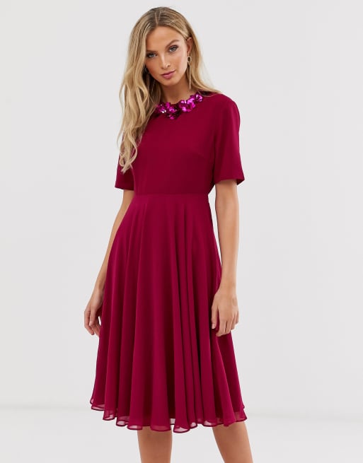 ASOS DESIGN – Midikleid mit kurzem Oberteil und verziertem Ausschnitt