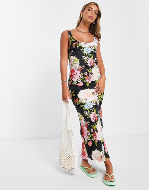 ASOS DESIGN – Midikleid mit U-Boot-Ausschnitt und Blumenmuster
