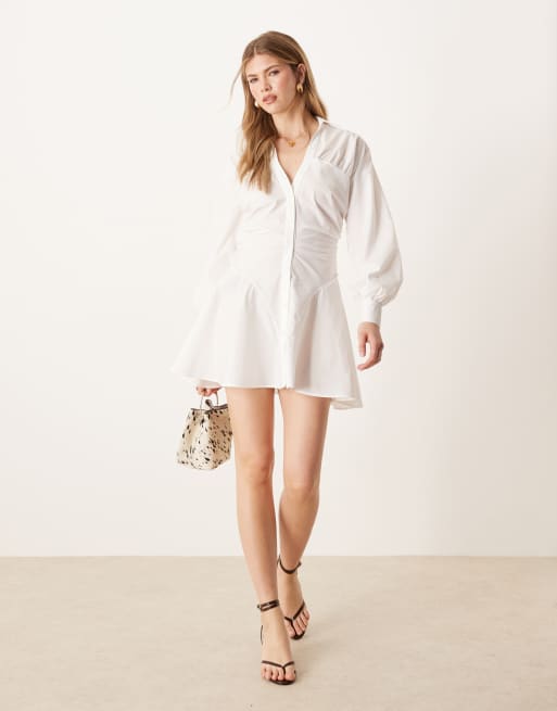 ASOS DESIGN – Mini-Hemdblusenkleid in Weiß mit gerafften Einsätzen
