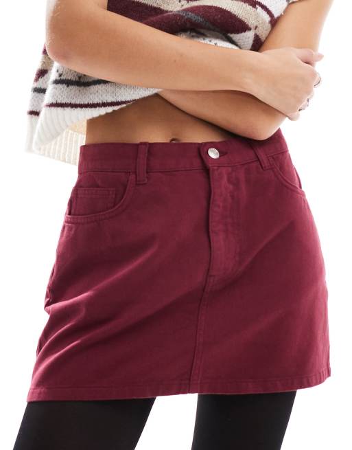 ASOS DESIGN – Mini-Jeansrock in Burgunderrot