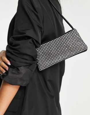 ASOS DESIGN – Mini-Schultertasche in Schwarz mit Strassbesatz
